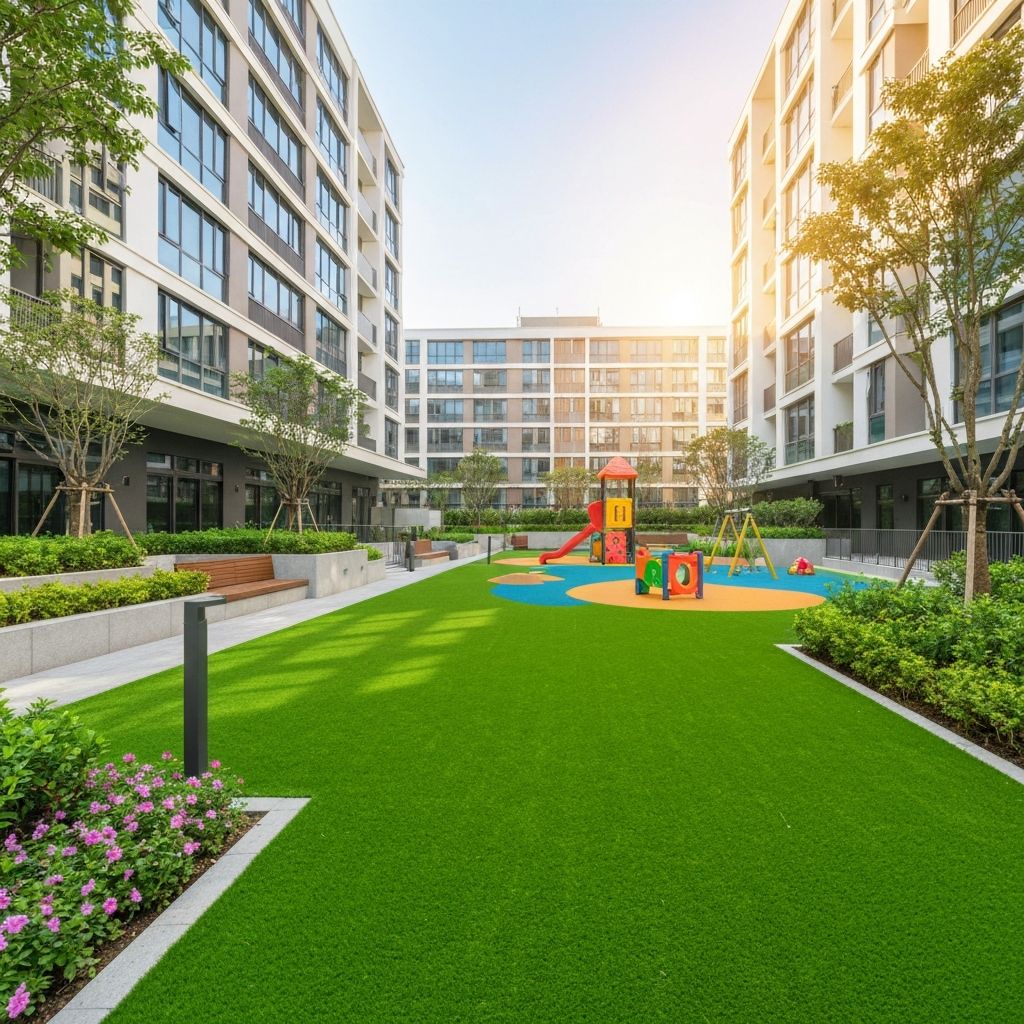 Descubra as possibilidades de transformação com grama sintética premium para diferentes áreas do seu condomínio
